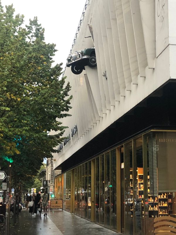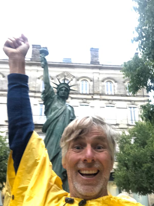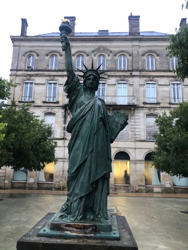But to find the odd, quirky surprises, I turned as always to Atlast Obscura. They list 28,169 "curious and wonderful" sites, including four in Bordeaux. I had time to visit three: the world's largest reflecting pool (Miroir d'eau), the Bordeaux Statue of Liberty built by the same sculptor as New York's lady, and a huge urban parking garage with a car crashing out the side ("This Bordeaux parking garage has 712 indoor spaces, and one outdoor.")