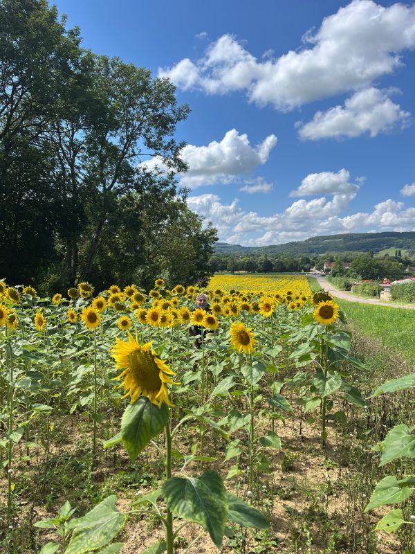 Equally breathtaking were daily walks out into the French countryside.  Living in a hilltop fortress means every walk starts with a big Down, to a network of walking paths between farms and quiet country roads.  We would pass well-maintained 13th century estates, and stacked-rock walls holding back hills, sheep and cows. Hay fields, sunflowers, even a boutique snail farm. Perfectly Pastoral and Peaceful (and helped balance the daily trips to the boulangerie for fresh baguettes and pastries).