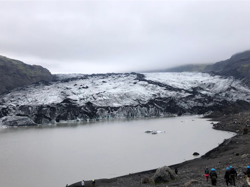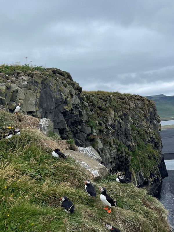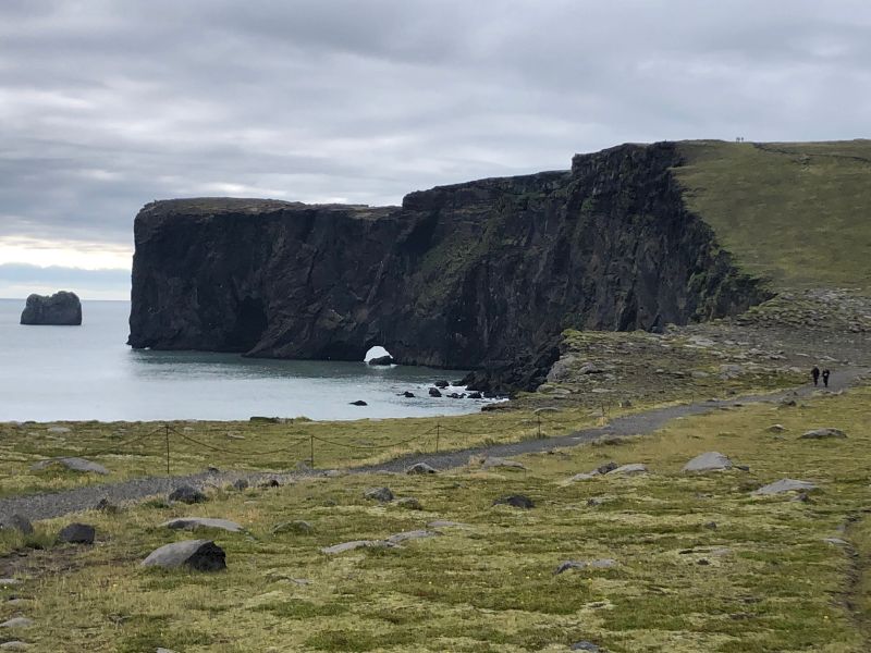 Rutshellir Caves was a quick interesting walk into one of the many man-made caves (for hay storage and a smithery) and earth-bermed root cellars in the region. Another detour took us to the base of Sólheimajökull Glacier, where we sadly did not have enough time to join a group climb (and which sadly has retreated 1.2 km over the last 80 years). Then we spent a long time hiking around the rugged Dyrhólaey Arch, lighthouse, cliffs, and nesting grounds for puffins.
