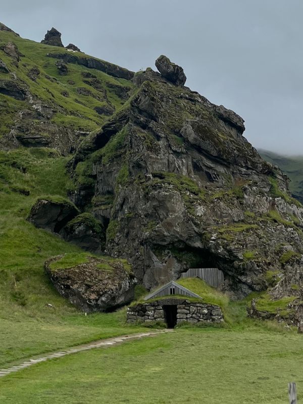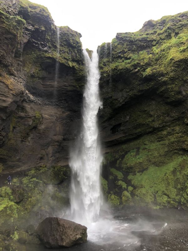 After gloriously waking up at 10:30, we spent the day meandering down the coast from Hella to Vik and back. Seljalandsfoss waterfall is postcard-perfect, especially from the cave behind (wear a poncho!), then a 20-minute walk to the left along the mossy mountain-base leads to another mystical Gljúfrabúi waterfall hidden up inside a tight canyon. Along the way is an old cave that used to be used for political meetings.