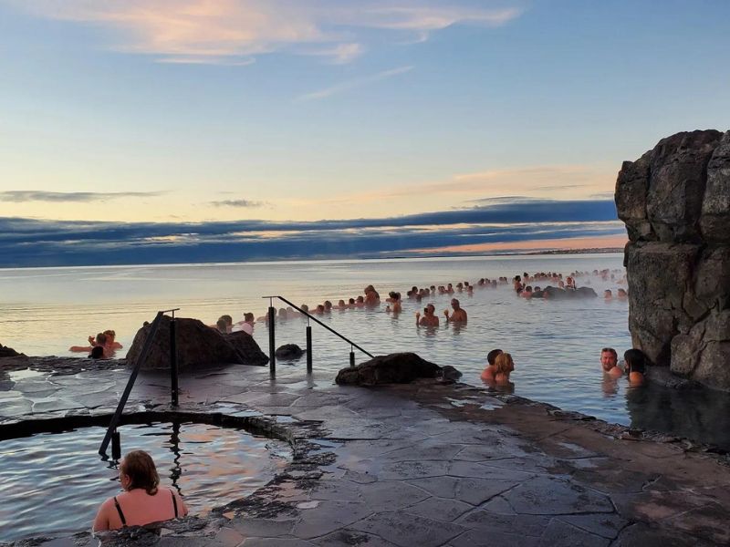 Twenty-five years ago Sarah and I vowed to Live Fully with each other, and each moment in Iceland was a vivid confirmation of that ever-unfolding promise. We slept on a wind-swept farm in a glass “Aurora Igloo”, watching the slow sunset glow long into the night. We ate lavishly: lobster (soup, tail, gnocchi), tender Icelandic lamb, fresh fish (cod, char, ling, flatfish) and a traditional rhubarb-filled “Happy Marriage Cake (Hjónabandssæla)”. Two of our three evenings were in geothermal spas, including (at Sky Lagoon) a full cold plunge/sauna/steam/scrub treatment, and fruity drinks in a huge infinity pool lagoon overlooking the ocean.