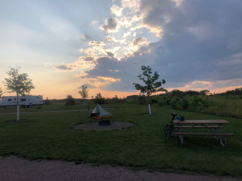 Halfway home from Winnipeg Sarah dropped me off to cycle the final 200 miles. The first 115 miles were on old railways through farm and forest (and the famous Lutheran church from Prairie Home Companion’s “News from Lake Wobegon”, where all the women are strong, all the men are good-looking, and all the children are above average”), and over 80% of the rest was on dedicated bike paths along the muddy Mississip. The first night I just pulled over and camped trailside, where I was awoken not by sirens and horns but by the loud snorting and hoofing of an elk, the frantic buzz of mosquitos trying to get into my tiny tent, and a very happy cyclist who whizzed back and forth 4 times at 5:30am on his fat-tired e-bike shouting a very merry “GOOOOOOD MORNING!”