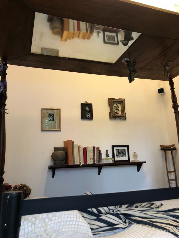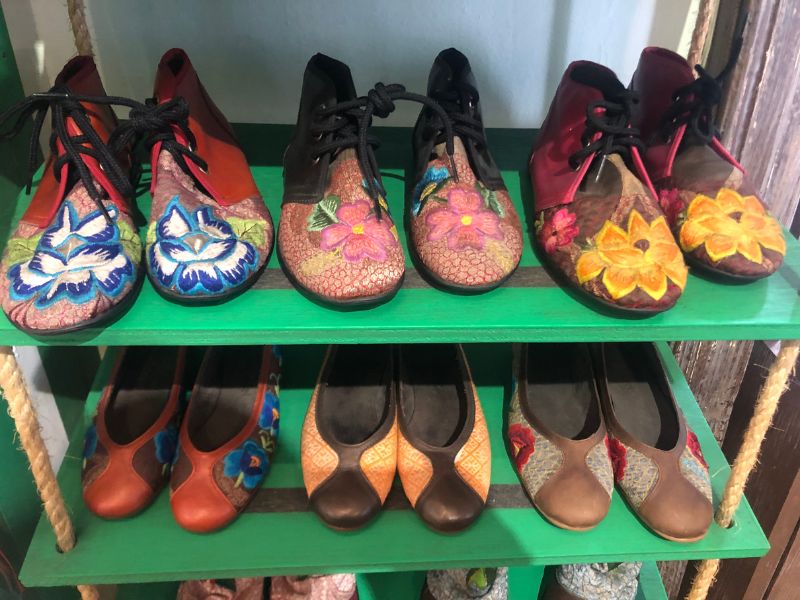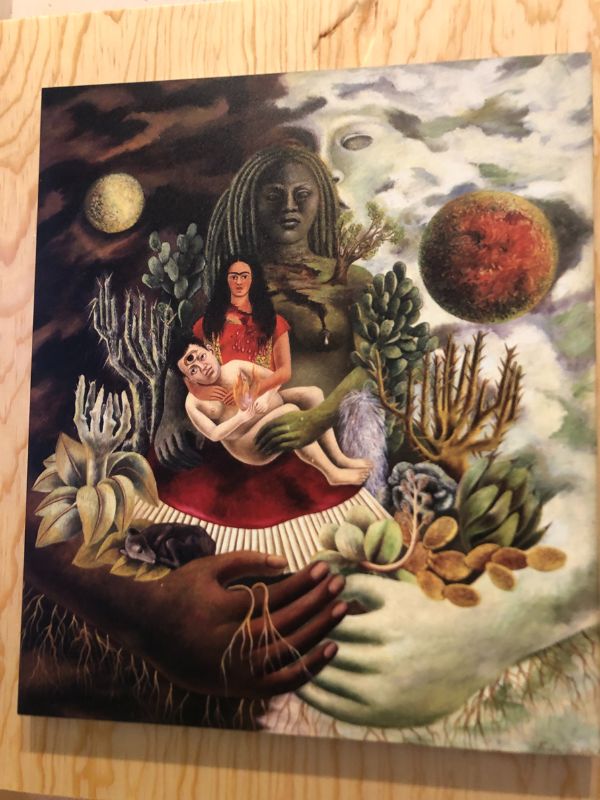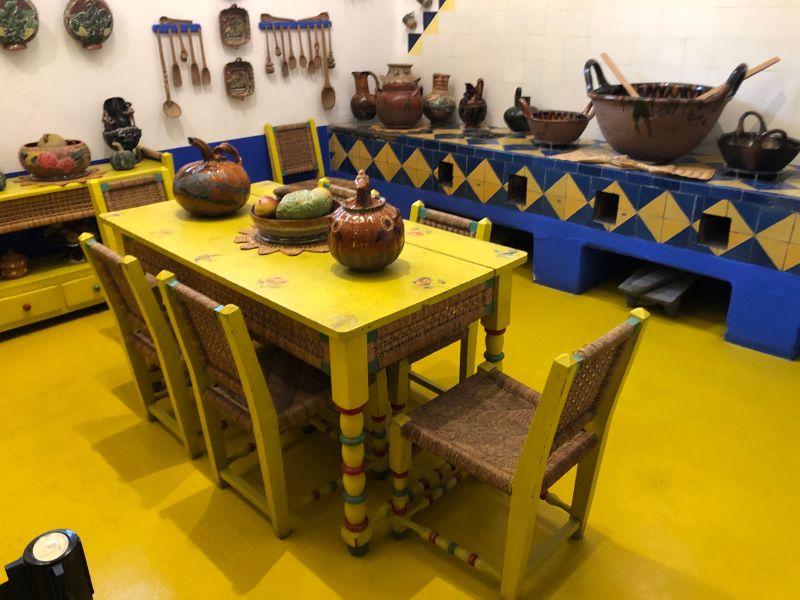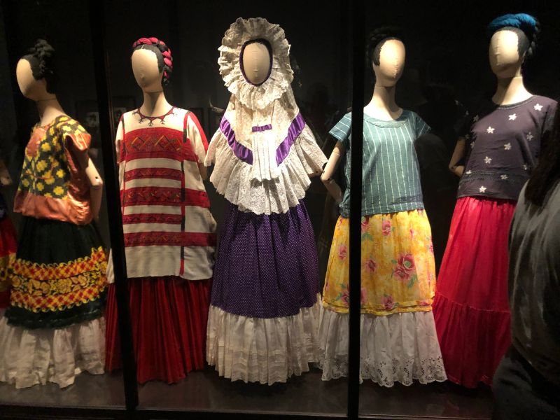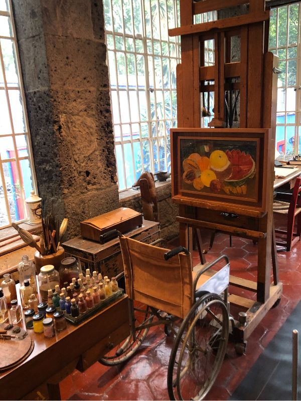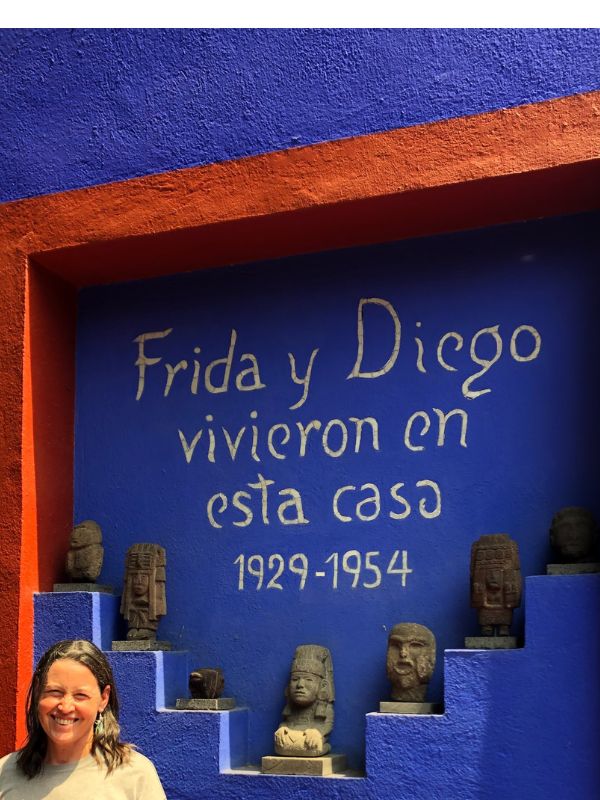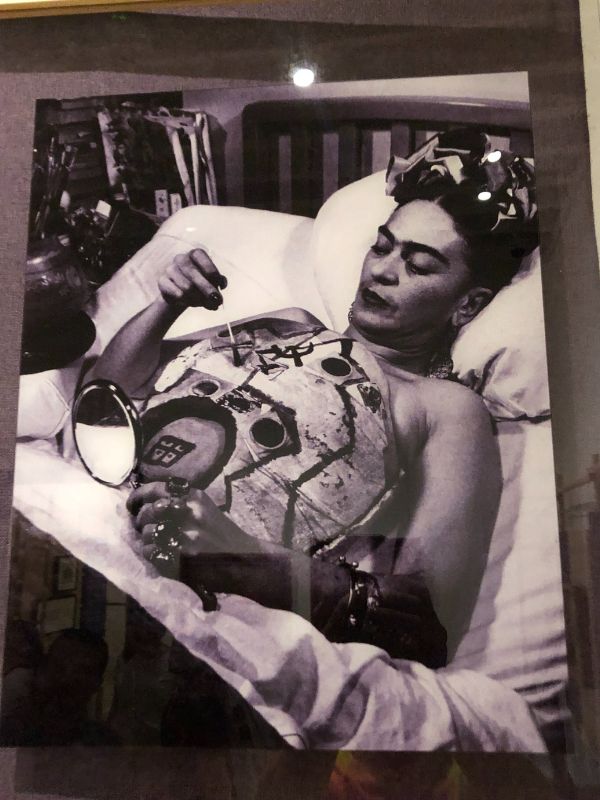 An even bigger highlight (possibly) than watching Liga MX soccer playoffs at Azteca Stadium was our visit to Frida Kahlo’s house. Usually these famous-people houses are simply period pieces that anyone could have lived in (with the exception of Elvis’ Graceland and Prince’s Paisley Park), but this house and garden truly embodied the creative spirit as well as the personal suffering of this unique, genius person. We could feel her: gazing out over the garden from her wheelchair, lying for days and months in bed painting self-portraits using the mirror mounted on the bed canopy above, decorating furniture, adorning and selecting shoes, sitting by the pond with her great love Diego, painting the body caste that constrained but never smothered her fire for so much of her life.