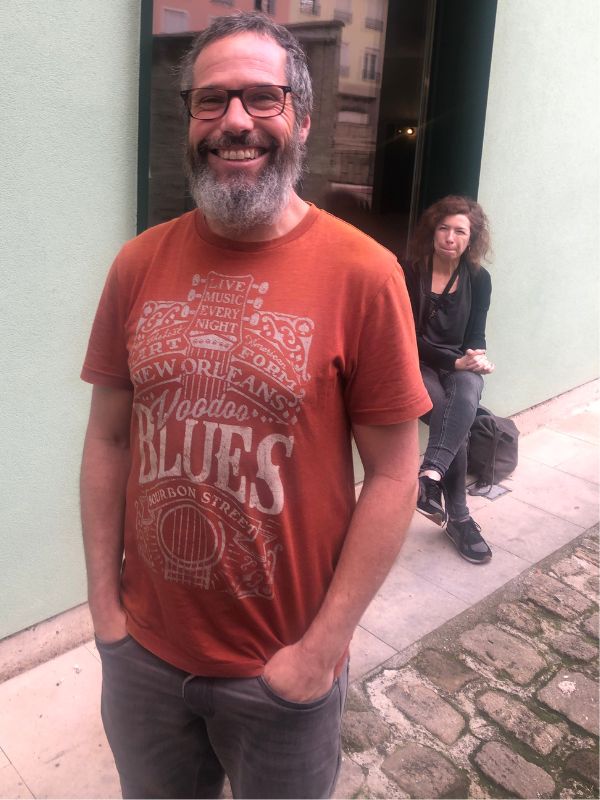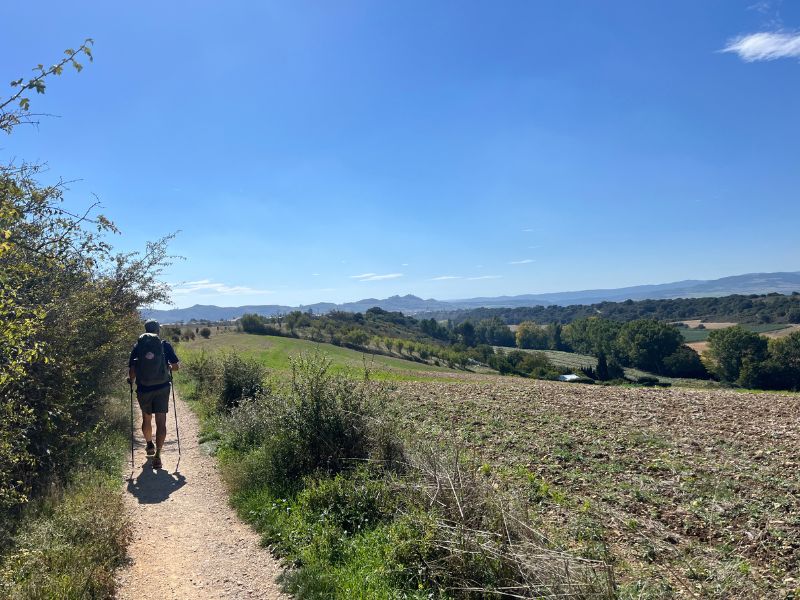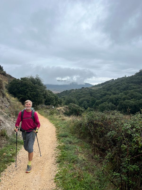 Day Three we’re back up and up then a treacherous downhill to Zubiri on a narrow path over deep jagged diagonal rock formations. It’s work, but still I’m never out of breath or heavy-legged or wishing it was over.