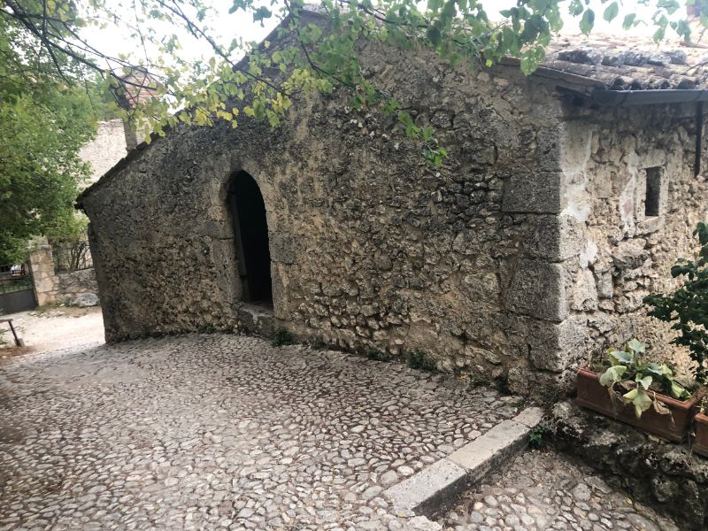 As a final treat, we stayed the night in the “Rifugio Rocca Calascio” (hostel) in the Medieval hamlet just below the walled fortress. Once the bustling narrow streets where the townfolk and castle staff lived a thousand years ago, it is now home to a few street cafés and tourist shops by day, and completely closed at night except for us handful of visitors who get to sleep in the restored rock-wall rooms scattered across the steep hillside.