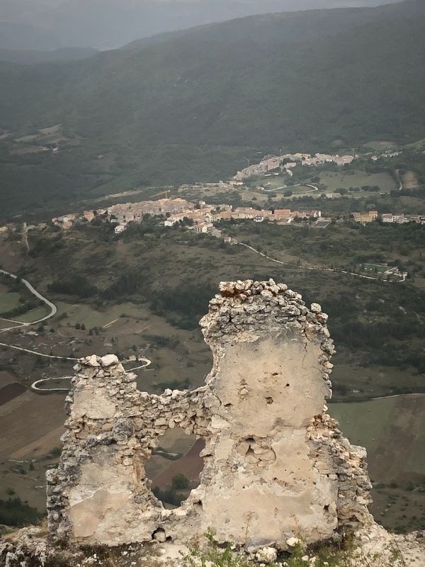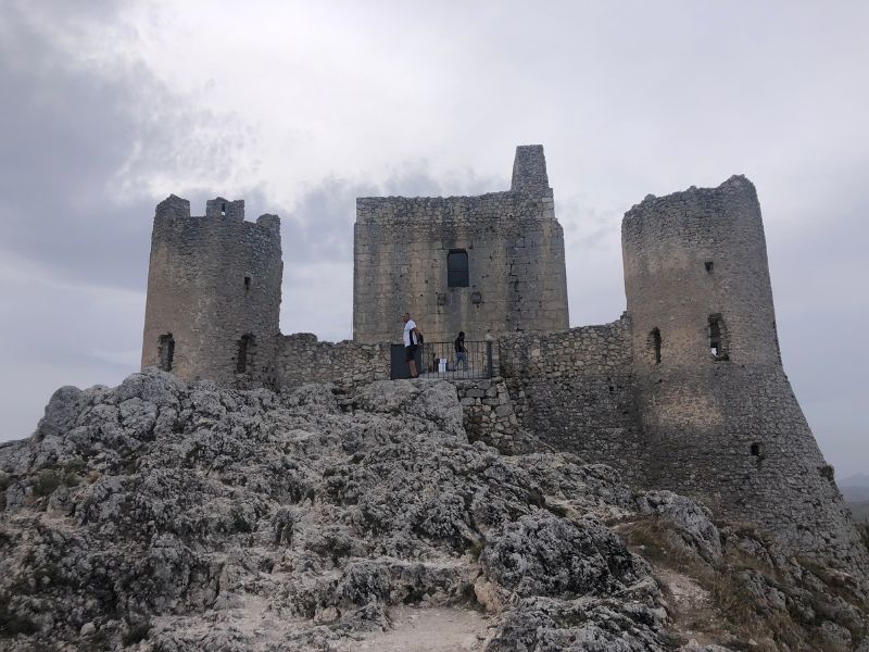 Just when we were wondering how long this could go, magic happened - the Rocca Calascio fortress suddenly loomed way at the top of the next mountain. At 1,460 meters (4,790 feet) above sea level, to be exact. Initially built as a watchtower in the 10th century or earlier, it was further built up in the 14th and 16th centuries. While it has mostly stood the test of time and earthquakes, the main tower used to continue another three impressive stories higher.