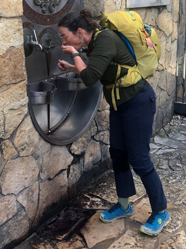It’s a good day to feel good - we pass our first 100km mark (out of 800), enjoy seeing and tasting the beautiful grapes in this famous wine region, and Sarah slups free wine from the monastery “Fuente de Irachi” wine fountain where some pilgrims hardily fill their entire water bottles (sadly, no kombucha fountain for us teetotallers).